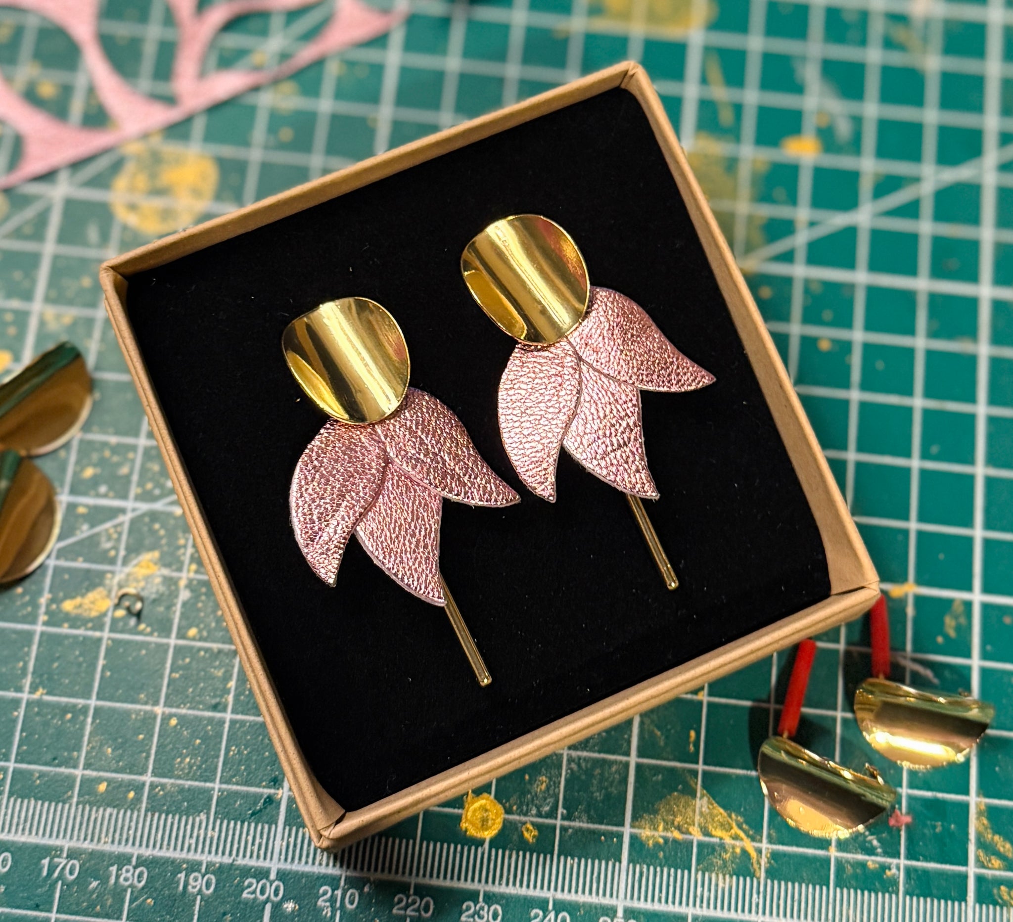 Inspired by the vibrant fuchsia flowers that dance through Ireland’s wild hedgerows, these earrings celebrate natural beauty, craftsmanship, and sustainability. Each pair is handmade from reclaimed leather, giving new life to forgotten materials while keeping waste out of landfill. Lightweight, colourful, and delicately shaped to mirror the elegant curve of the fuchsia blossom, they bring a touch of Irish wildness to any look.