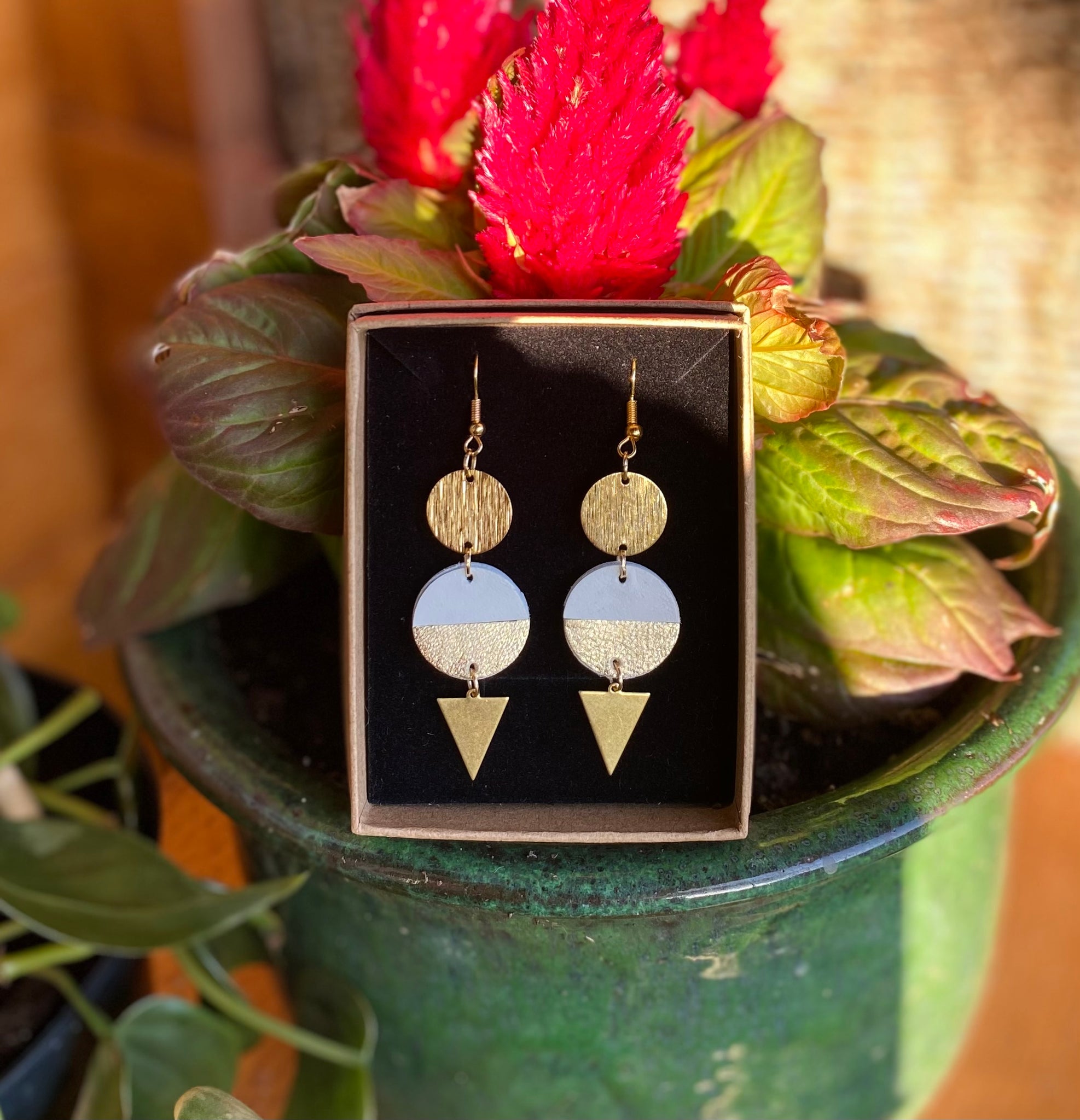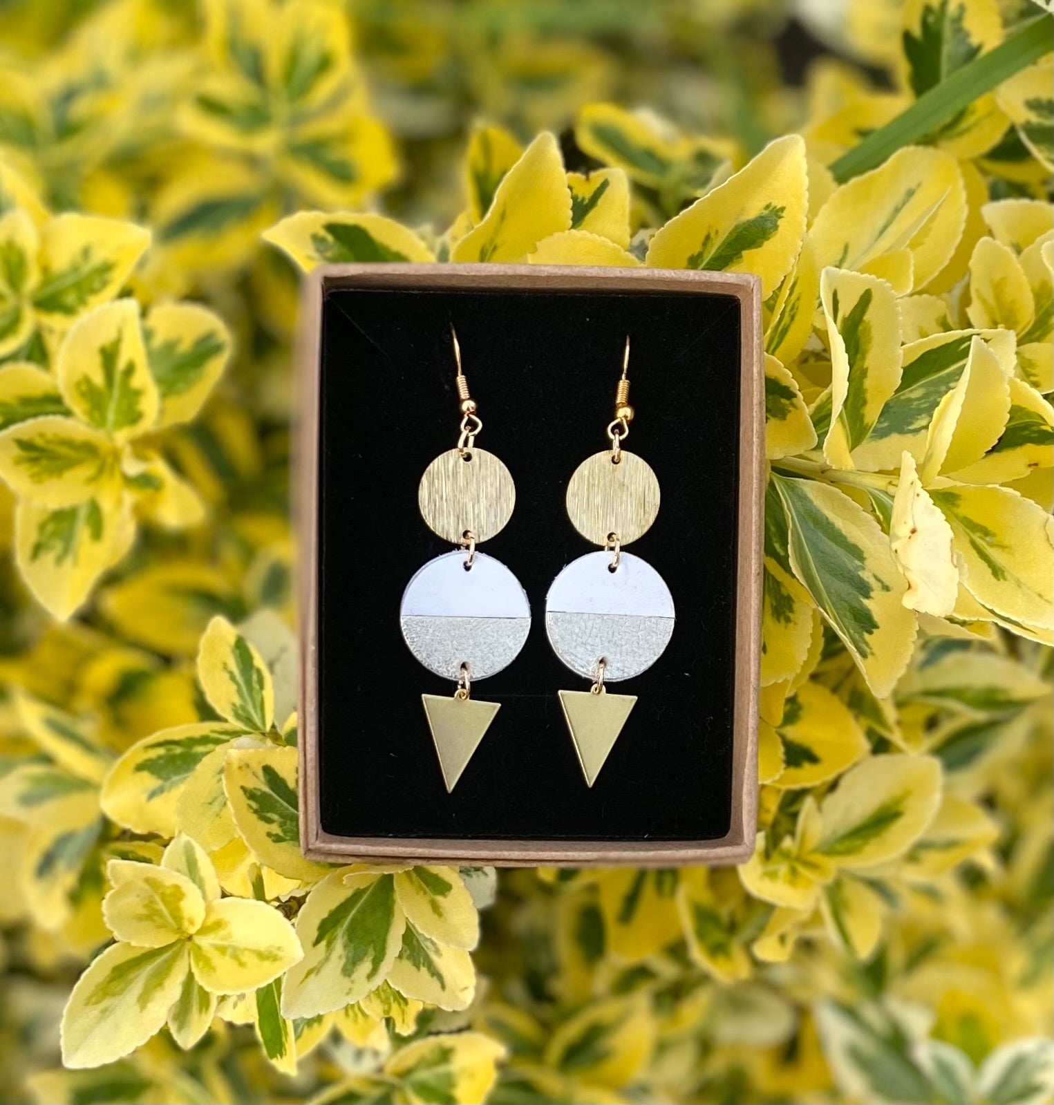 The gold plated hook wire findings are perfect for sensitive ears. The gold plated disc and triangular charm really add a sense of modern elegance to their design.