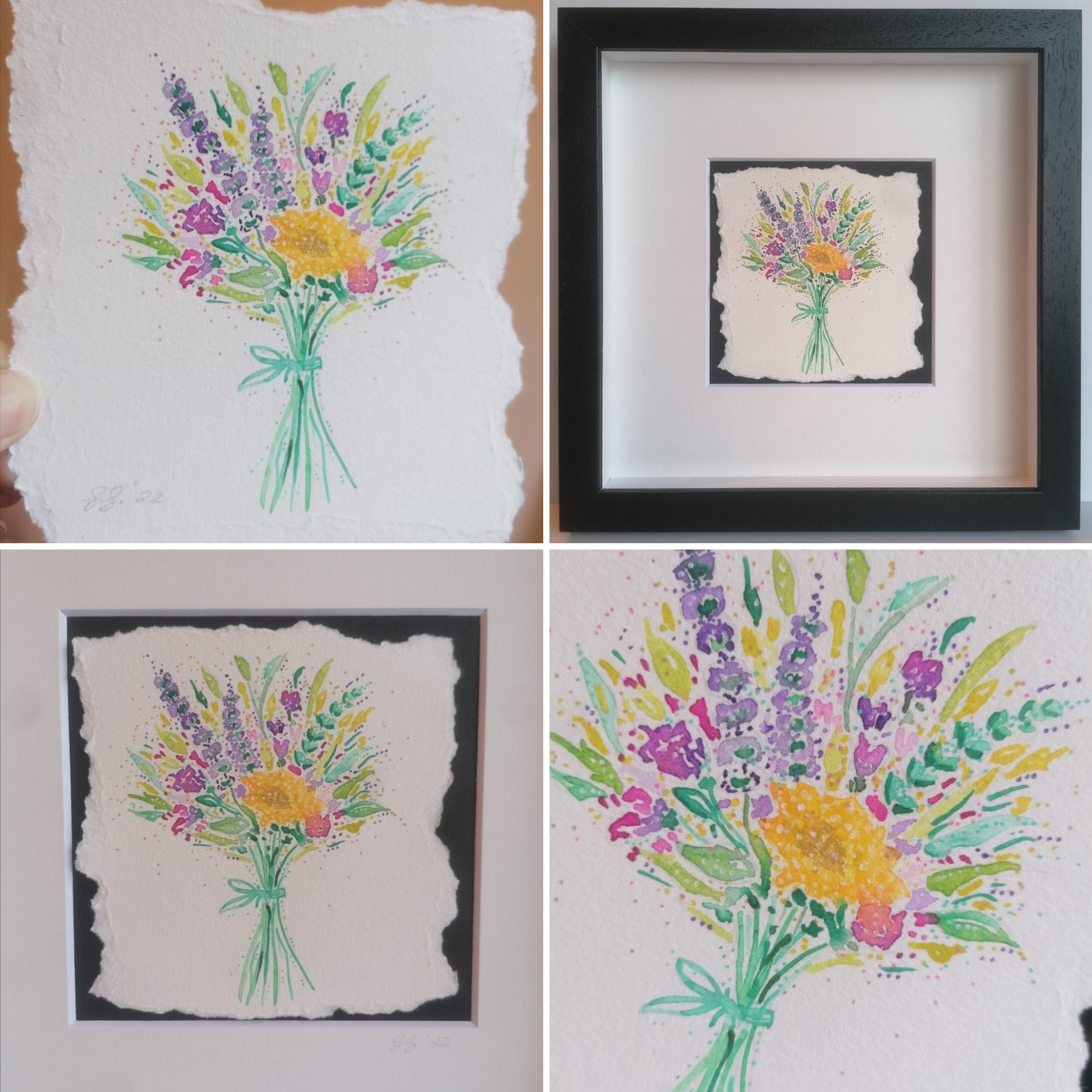 A gorgeous little original watercolour of a bouquet of colourful flowers.